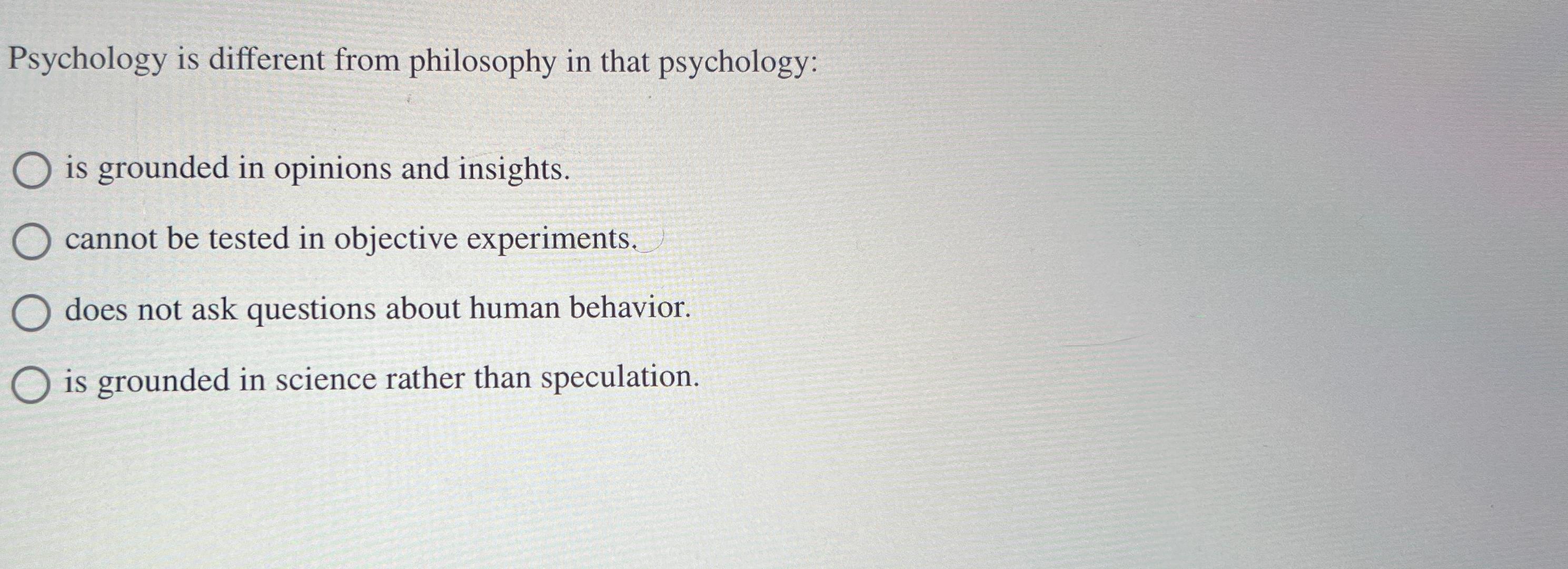 Solved Psychology is different from philosophy in that